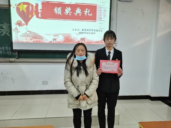 本次比赛分为两个环节:第一环节选手进行个人PPT展示,参赛选手们依次介绍了各自在学习和工作中作为一名优秀团员的具体表现和先进事迹等;第二环节为知识问答,参赛选手按照抽签顺序抽取题库,根据团员相关知识进行作答。参赛选手们用其富有感染力的演讲和自信满满的回答,展示了新时代团员积极向上的风采。比赛结果最终为:张思颖同学荣获一等奖,张乐萍、邓茜两位同学荣获二等奖,李俊杰、章萌、徐梦三位同学荣获三等奖,朱行怡、朱娜娜、左悦、王晶四位同学荣获优秀奖。
