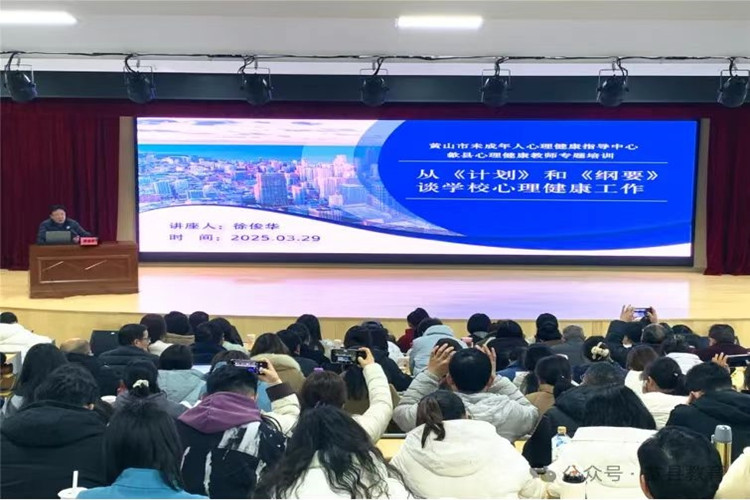 我院徐俊华教授赴歙县为该县中小学专兼职心理健康教师做专题辅导,详细解读了教育部等十七部门《全面加强和改进新时代学生心理健康工作专项行动计划(2023—2025年)》的指导思想、具体目标和内容、方法途径等,结合专项行动计划实施两年多来,我市未成年人心理健康教育辅导工作所取得的成效,并对学校心理健康工作的扎实开展和心理健康示范校的创建提出了工作建议。县教育局相关负责人及中小学专兼职心理健康教师130余人参加专题辅导会。