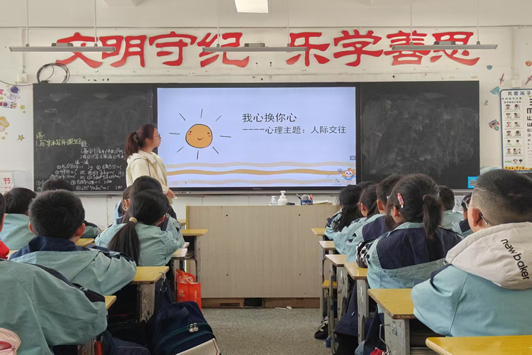 在屯溪龙山实验小学,我院教师带领大学生志愿者针对小学生的认知发展水平和特点,开展“真诚交往、我心换你心”主题心理健康课。通过趣味性的课堂互动,让同学们绘画和制作个性化名片,向同学介绍自己的以及自己朋友的兴趣爱好、性格特点。引导学生正确认识自我并发现同伴的价值,在团队合作中体会友谊的真谛。