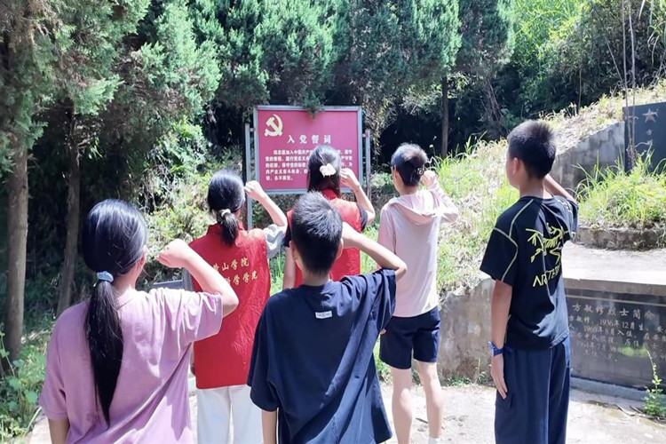 7月7日,志愿者联合当地负责人带领罗田村儿童走进方敏修红色基地和岩寺新四军军部旧址参观,开展红色德育活动。参观中,孩子们聆听革命故事,感悟先辈精神,随后,志愿者在党旗前为孩子们讲解党旗意义孩子们举起小拳头宣誓:“学习英雄榜样,爱祖国爱人民,好好学习为祖国添力量!”清脆誓言中,爱国种子深深扎根童心。