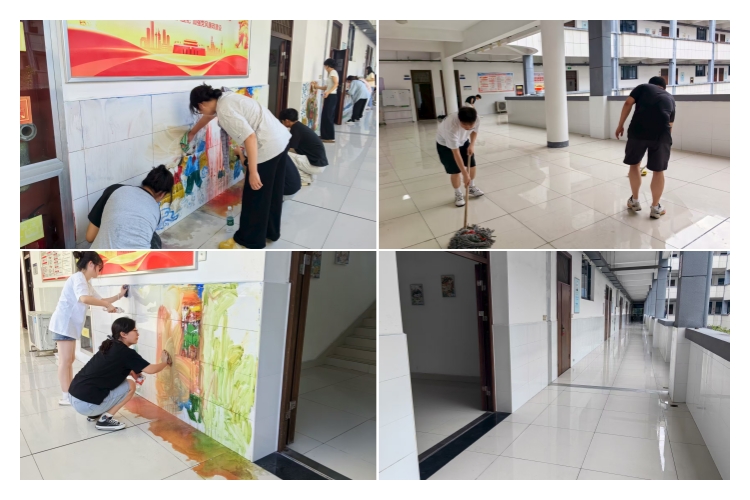 活动中,大家分工明确,手持扫帚、抹布、垃圾袋等工具,对文渊楼走廊、楼梯间及周边公共区域进行全面清扫。