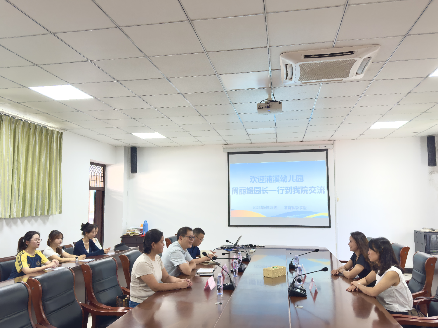 9月26日,黄山区浦溪幼儿园园长周丽媛工会主席杜雪源一行到访英国正版365首页,与学院副院长袁书杰、党总支副书记赵国力及学前教育教研室负责人王永杰展开深入交流。双方围绕学前教育专业2026版人才培养方案修订、教育实习模式创新等议题进行了广泛探讨。