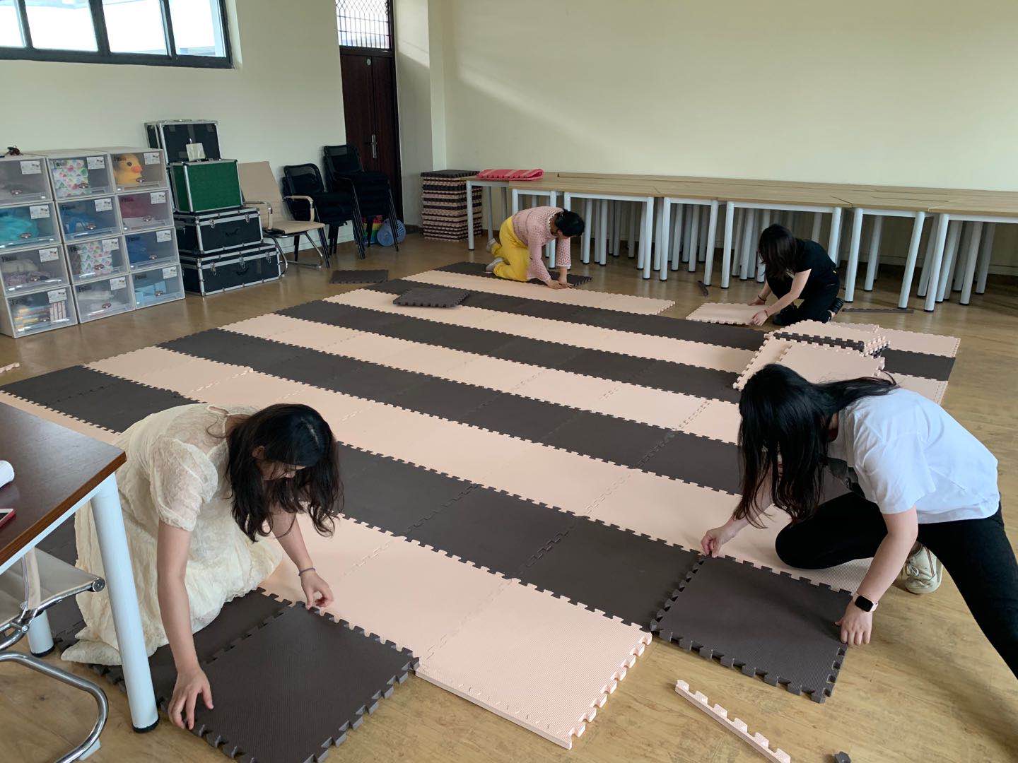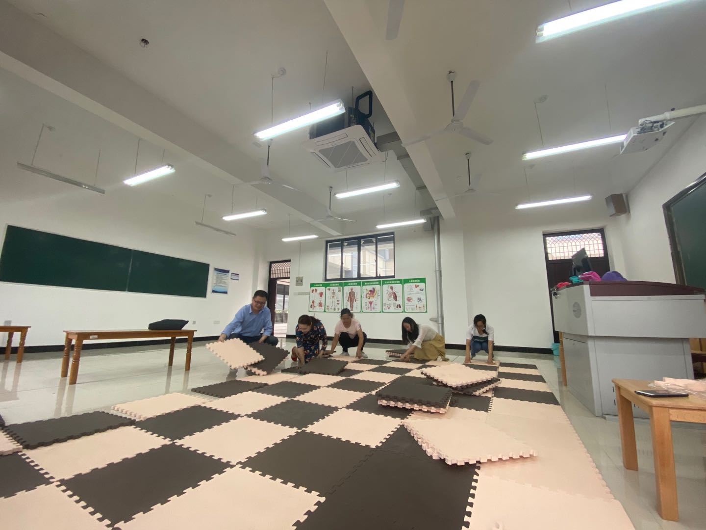 活动中,同志们根据考场功能、所在楼层等进行分工负责,对文渊楼第三、四、五层的舞蹈、乐理和讲故事考场教室进行了全面清洁和精心布置。大家发扬不怕吃苦、劳动最光荣的精神,分工协作,干劲十足。有的扫地、有的拖地、有的搬桌子、有的铺泡沫垫、有的抬钢琴,同志们干得热火朝天。经过大家的共同努力,所有考场教室整洁干净,考场设备摆放合理有序,为即将来参加学前教育专业对口招生考试的700多名考生营造干净舒适的考场环境。