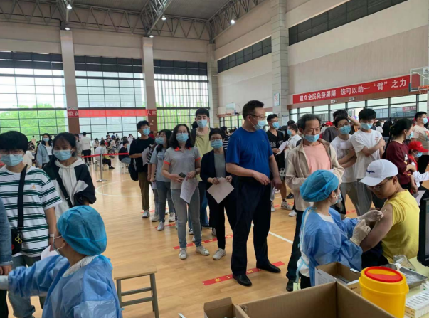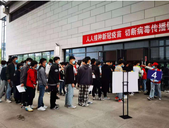 在我院学生志愿者队伍的引导下,各学院学生以班级为单位,分批进入风雨操场二楼接种疫苗,保证接种现场井然有序,他们热心的引导、耐心的解答获得了我校师生的一致赞扬。