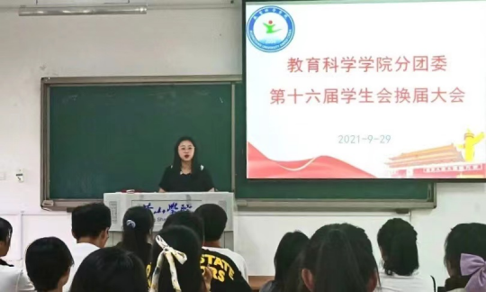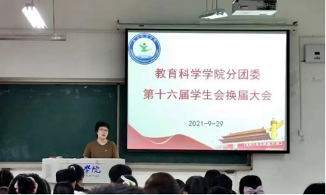 大会第一项,教科院党总支副书记朱蕾晔对上一年度分团委和院学生会的工作给予了肯定与鼓励,希望新一届学生会继续秉承团结协作的工作作风,将勇于拼搏的精神发扬光大。