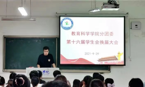 大会第二项,教科院第十五届学生会主席杨昊作上年度工作总结报告,接着新一届学生会主席付壮对本学年学生会工作作大体规划,并表达了自己将勇于承担责任,带领院学生会蓬勃发展的决心。