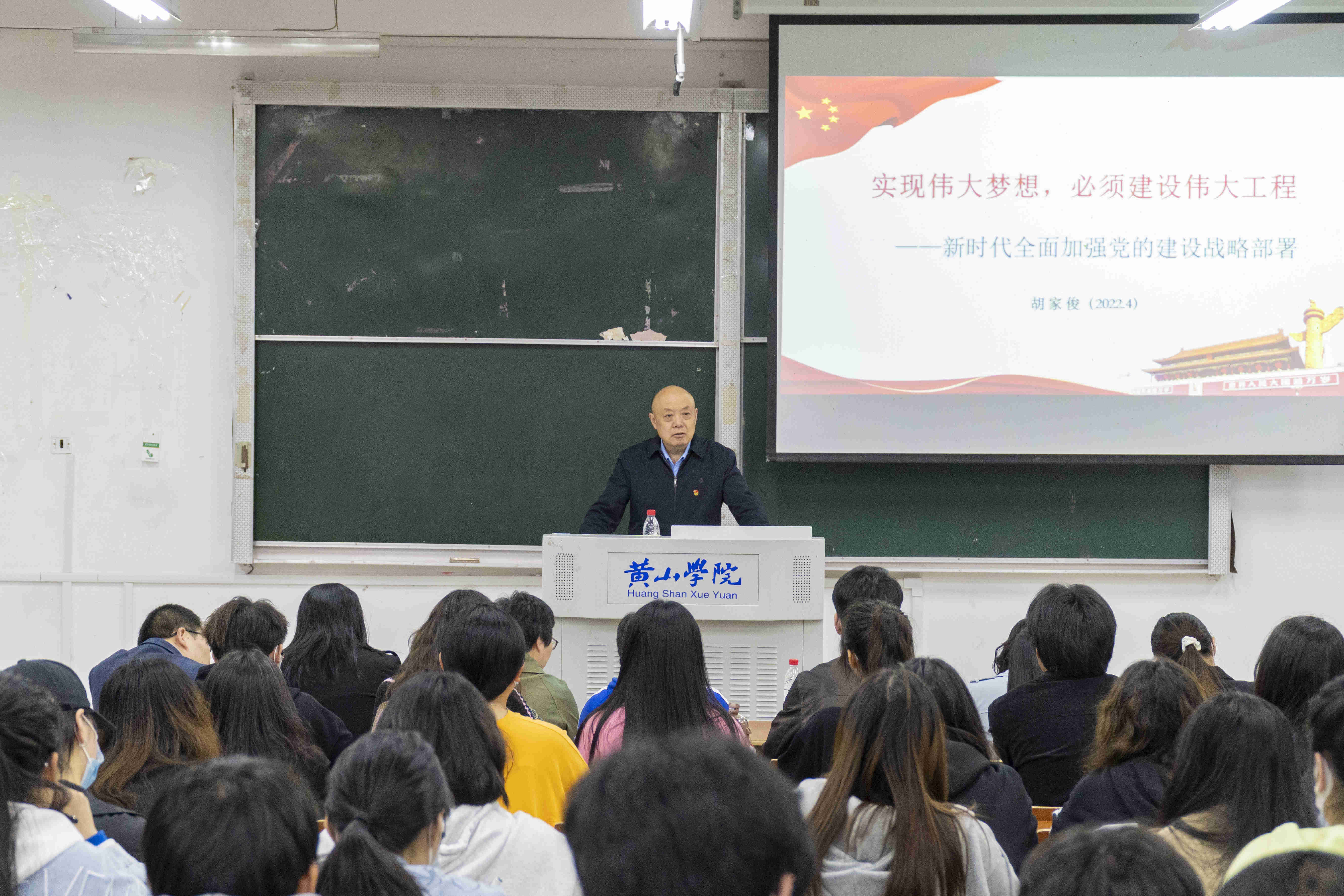 4月13日下午在文渊楼1105教室,校党委副书记胡家俊为英国正版365首页分党校和艺术学院分党校的第57期入党积极分子讲授题为“实现伟大梦想,必须建设伟大工程”的专题党课。
