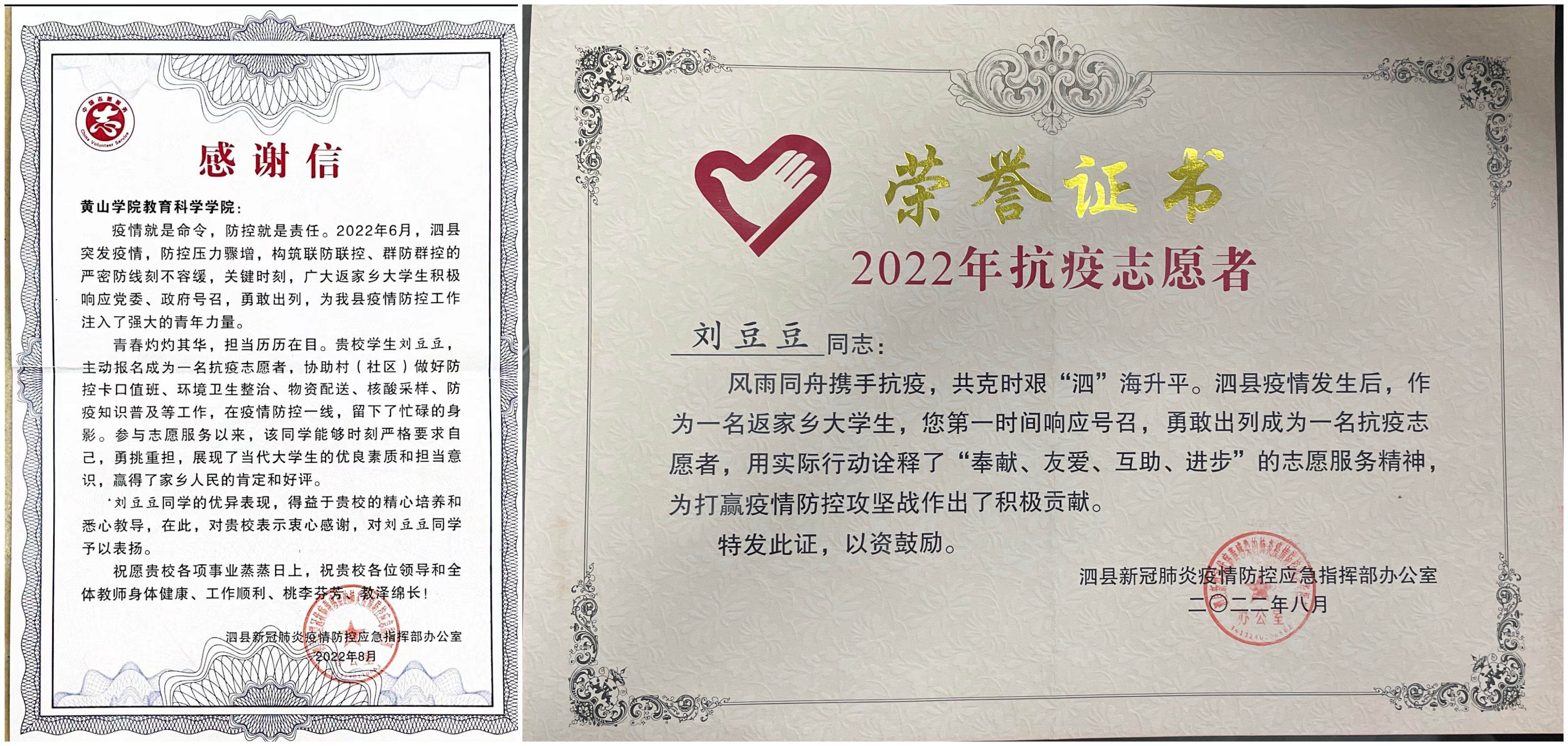 信中写道:“在2022年6月,泗县突发疫情,防控压力骤增,群控防控的严密防线刻不容缓,关键时刻,贵校学生积极响应党委、政府号召,勇敢出列,主动报名成为一名抗疫志愿者,用实际行动诠释了志愿服务精神,展现了当代大学生的优良素质和担当意识,其优异表现赢得了家乡人民的肯定和好评。”此外,信中还提到,感谢贵校英国正版365首页一直以来对该同学的精心培养和细心教导,同时鼓励其不负学院的培养与教育。