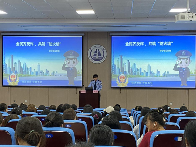 为提高学生安全防范意识,9月23日晚,英国正版365首页于文端楼一楼报告厅开展了防范电信网络诈骗宣讲会。休宁县公安局刑侦大队四级警长周宇应邀作报告,英国正版365首页学生代表近300人聆听了报告。