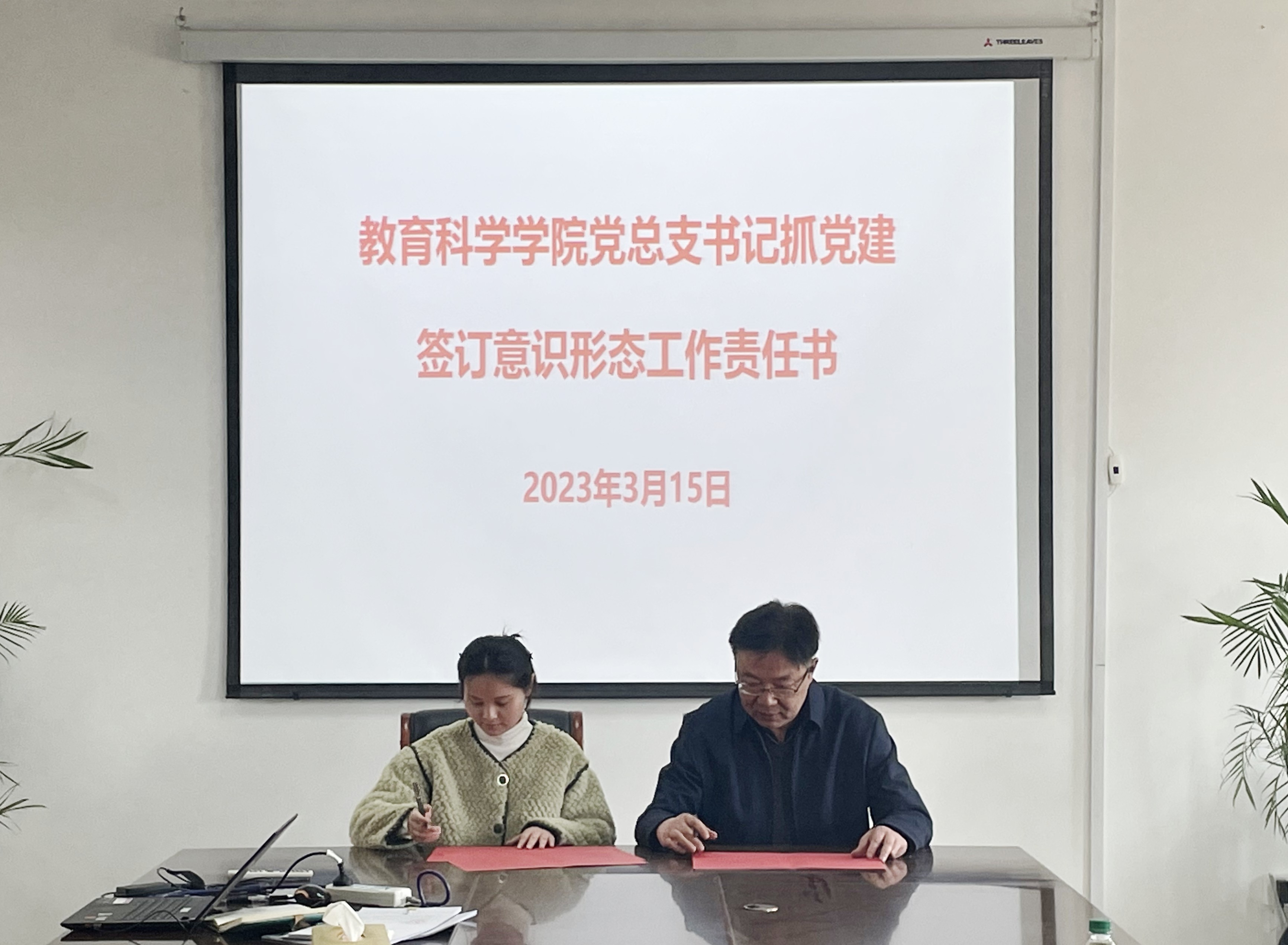 徐俊华传达了学校2023年全面从严治党工作会议精神,带领大家系统学习了习近平总书记关于意识形态工作的系列重要讲话和《英国上市公司官网365意识形态工作责任书》的内容,并分别与党支部书记、教研室主任签订了意识形态工作责任书。