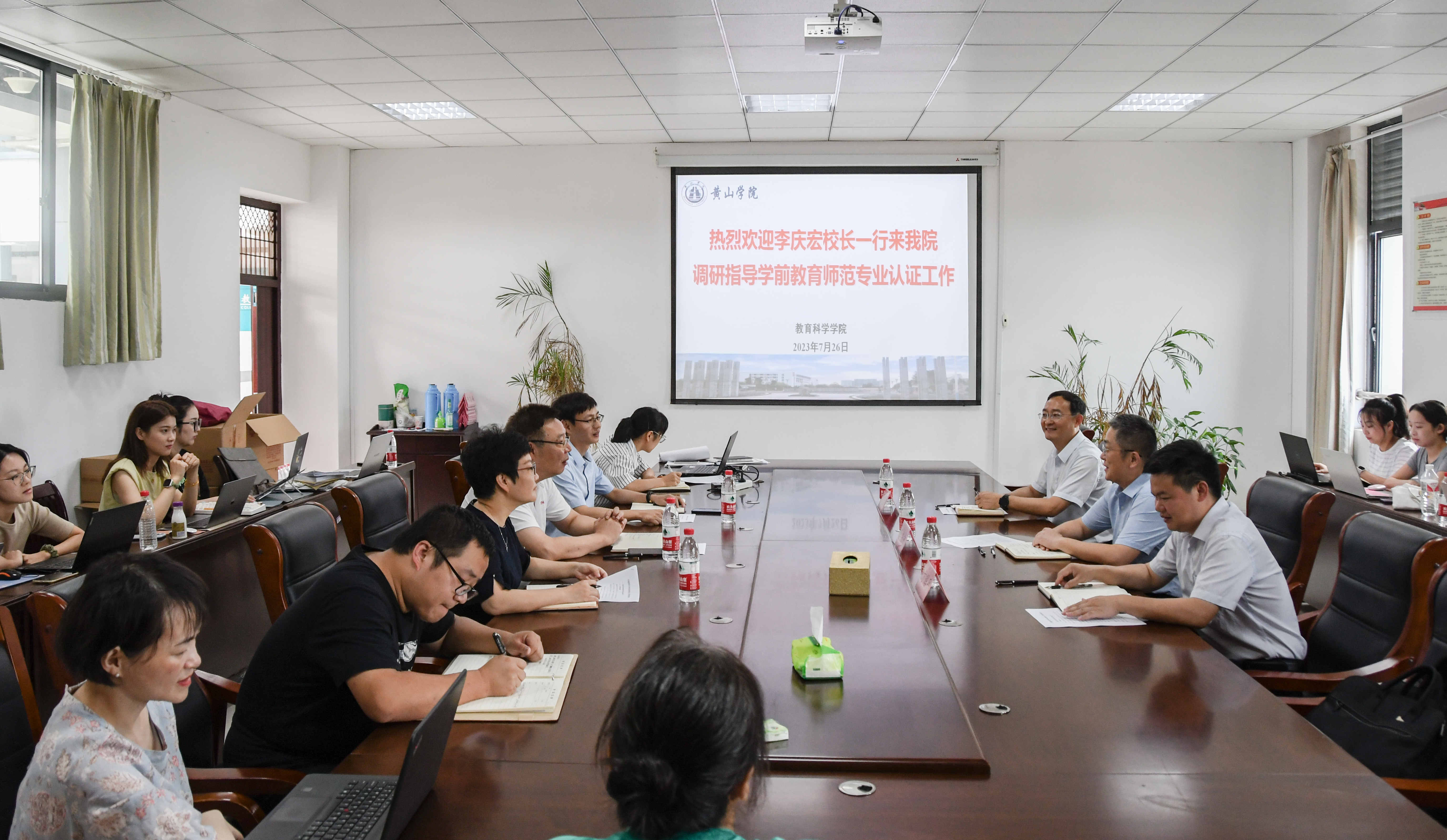 7月26日上午校党委副书记、院长李庆宏在办公室、教务处等部门负责人的陪同下英国正版365首页调研指导学前师范专业认证工作。英国正版365首页领导班子成员、教研室主任、全体教师参加调研工作会议