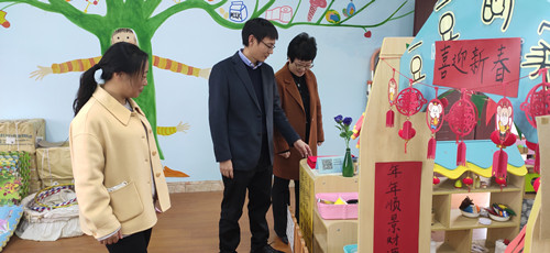 座谈会前,汪海彬一行在常熟理工学院师范学院副院长周炎根,学前教育教研室主任左瑞红、小学教育教研室主任袁强的陪同下,参观了师范学院实验实训室。