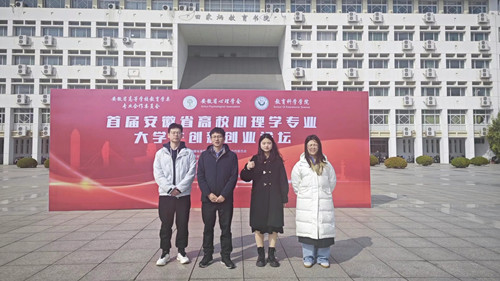 32日至3日,安徽省首届高校心理学专业大学生创新创业论坛在安徽师范大学赭山校区举行。我校应用心理学专业学生赛前在学业导师的精心指导下,深入讨论选题和方案,根据自己的兴趣、特长优势领域确定选题和参赛方案。在比赛中沉着冷静、充分发挥团队精神,取得优异成绩并荣获优秀组织单位。