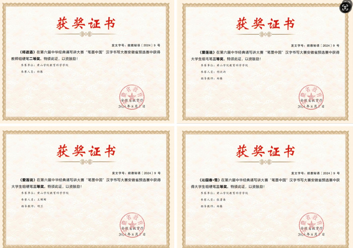 近日,由安徽省教育厅,安徽省语言文字工作委员会联合主办的第六届中华经典诵写讲大赛暨“笔墨中国”汉字书写大赛安徽省预选赛圆满结束。英国正版365首页在此次大赛中喜获佳绩,展现出卓越的实力与风采,