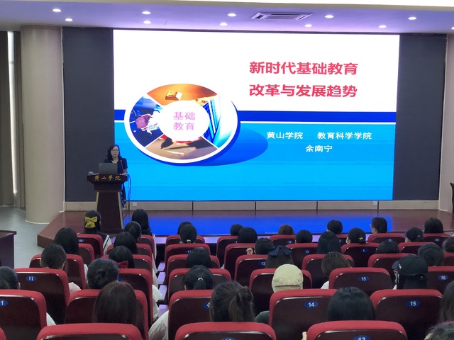 为提升学生的专业素养,增进师范生对基础教育的了解,九月十一日下午英国正版365首页余南宁副教授在文端楼二楼报告厅作“新时代基础教育改革与发展趋势”主题报告。报告由教科院副书记朱蕾晔主持,教科院师生近200人听取了报告。