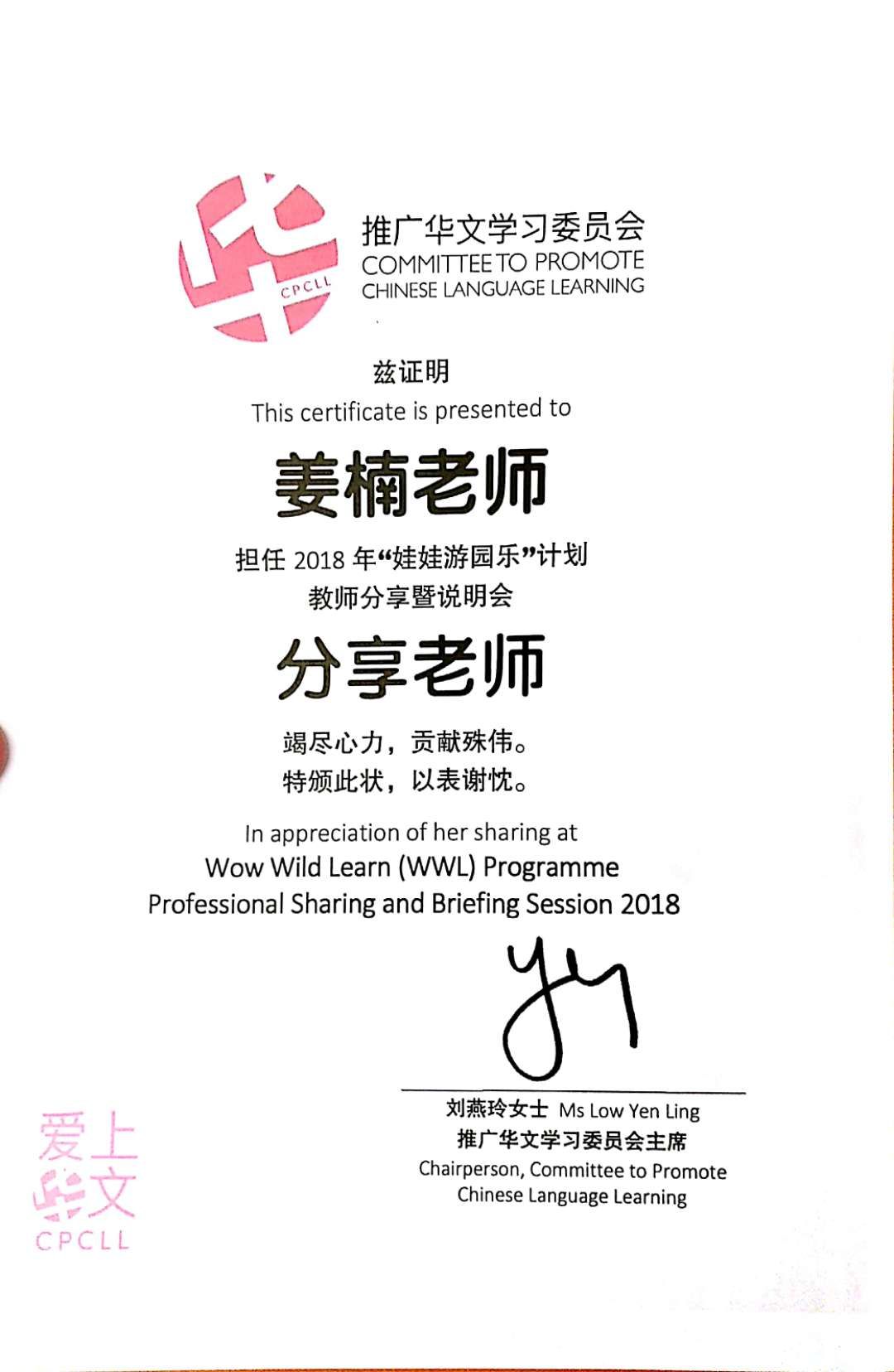 近日从新加坡传来喜迅,我院学前教育专业2015届毕业生校友许黎获得2020年“新加坡幼儿华语文教具比赛——创意桌游篇”入围奖。这是继该专业2014届毕业生姜楠获得2018年新加坡教育部表彰后的又一次殊荣,彰显了我院学前教育专业毕业生良好的专业素养和在华语教学中取得的优异成绩。